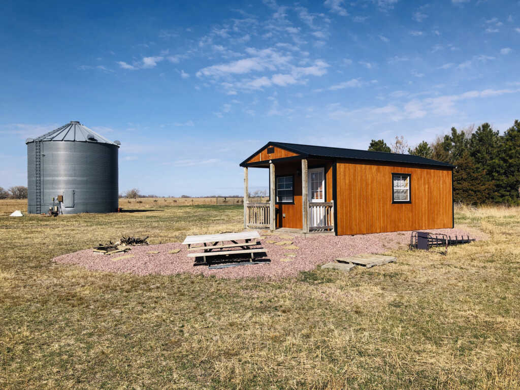 The pond in the southeast corner of the property was previously a holding pond in 1975 but has now been stocked with a variety of fish. In the northwest corner of the property, there’s a small hunting cabin, that’s less than a year old, and a 10,000-bushel grain bin that sit on the 5.9 +/- acres not enrolled in the WRP program. The grain bin is currently leased for 2022 with an annual payment of $1,000.