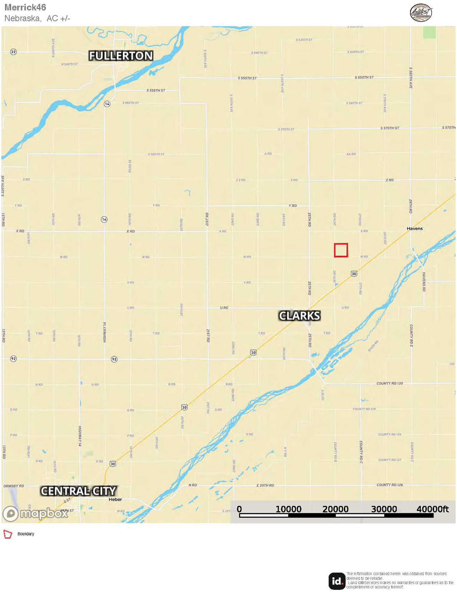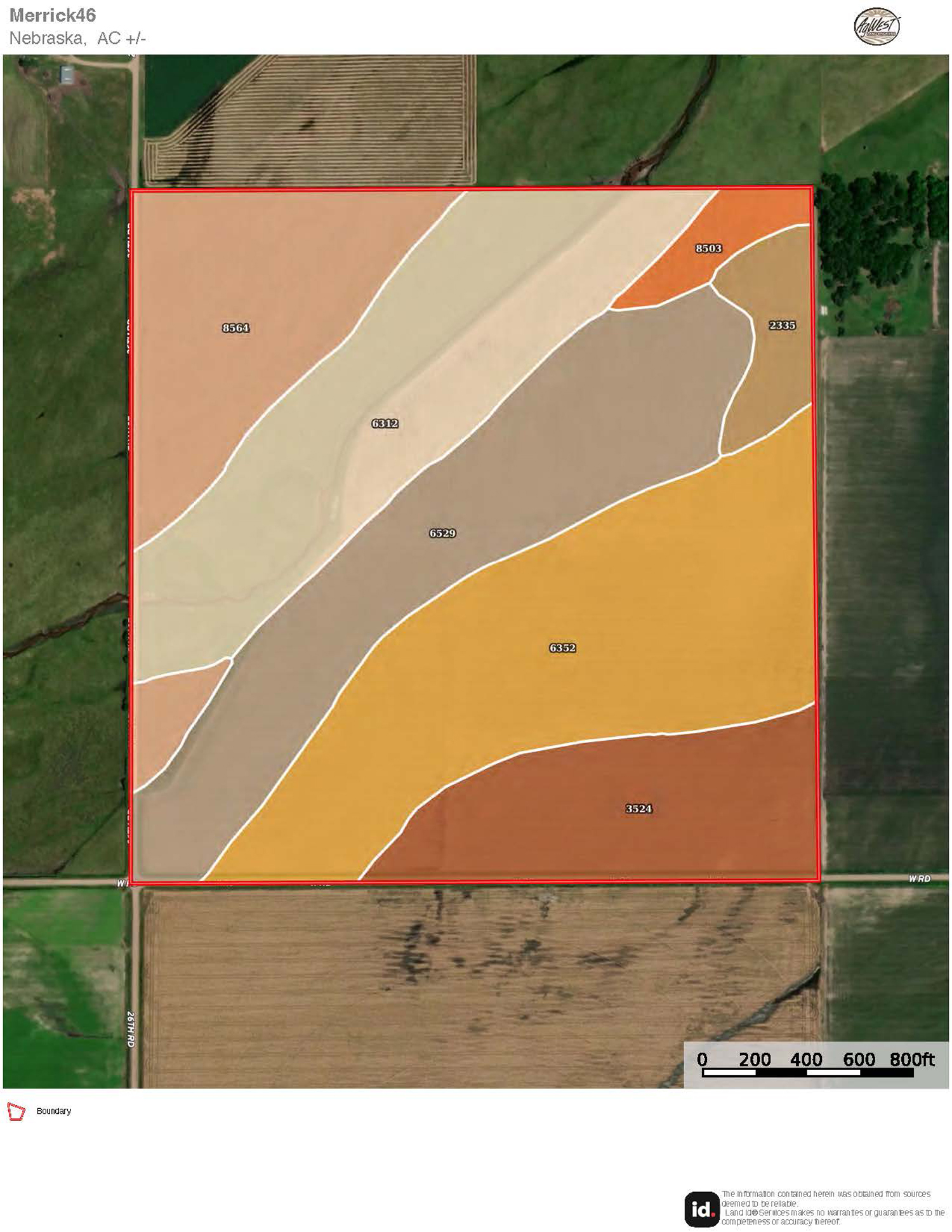The information contained herein is as obtained by AgWest Land Brokers LLC—Holdrege, NE from the owner and other sources. Even though this information is considered reliable, neither broker nor owner make any guarantee, warranty or representation as to the correctness of any data or descriptions. The accuracy of such statements should be determined through independent investigation made by the prospective purchaser. This offer for sale is subject to prior sale, errors and omissions, change of price, terms or other conditions or withdrawal from sale in whole or in part, by seller without notice and at the sole discretion of seller. Readers are urged to form their own independent conclusions and evaluations in consultation with legal counsel, accountants, and/or investment advisors concerning any and all material contained herein. Maps are for illustrative purposes only and are not intended to represent actual property lines.