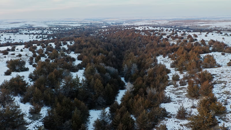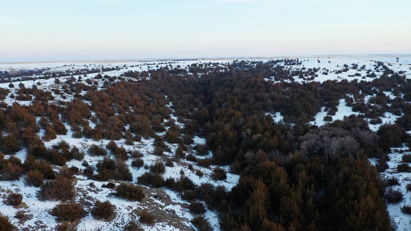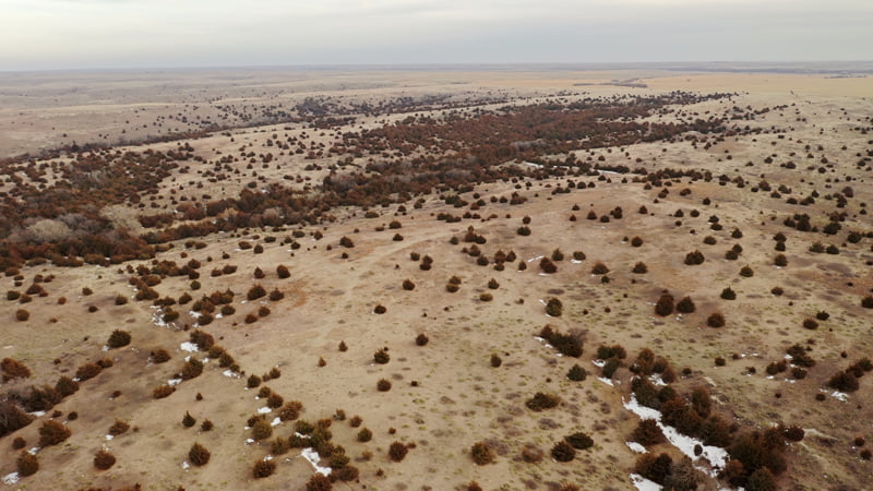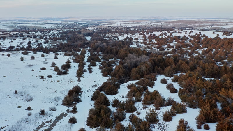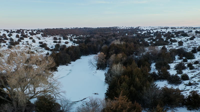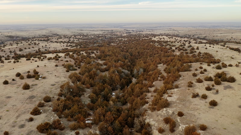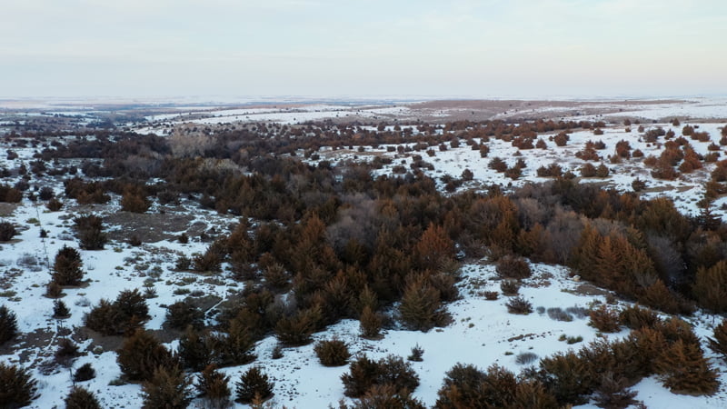 Overlooking the Solomon River in the near distance, this one of a kind property offers breathtaking views and world class hunting in Norton County, Kansas. As you approach the cattle guard at the south end of the ranch you will immediatly notice this is not your average hunting property. Mature cedars blanket the deep canyon draw running through the center of the property, canvasing most of the ranch in a forest of thick cedars and shrubs. Completely secluded from the neighboring properties from the cedars and steep rolling topography, this tract allows the whitetail, mule deer, turkey, and other various wildlife to have minimal to no pressure throughout the year. Tucked away in the cedars, rests a beautiful spring fed pond near the north boundary line giving wildlife a great source of water year round. This property is truly one of a kind, from its scenic views of this incredible landscape, and the unbelievable hunting opportunity this ranch offers.