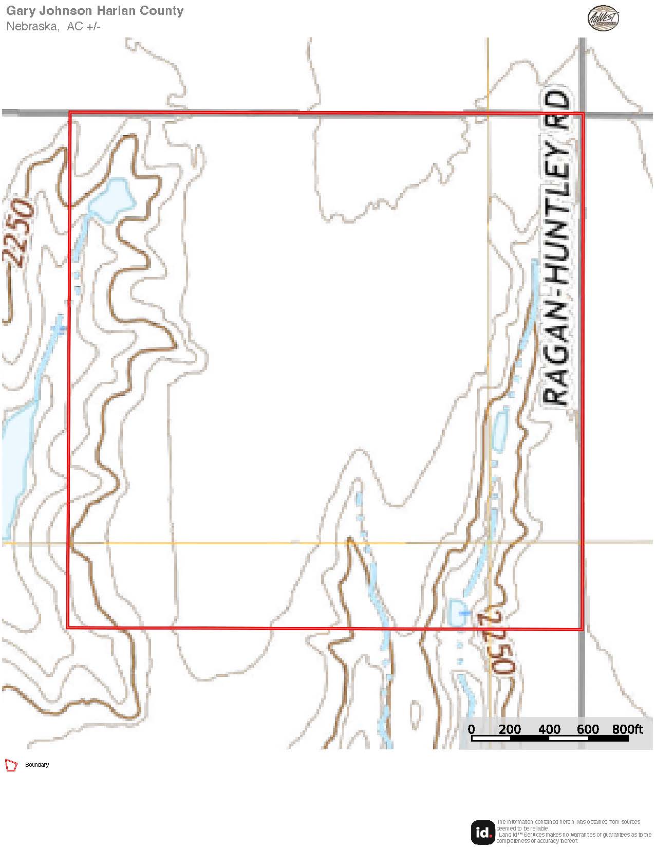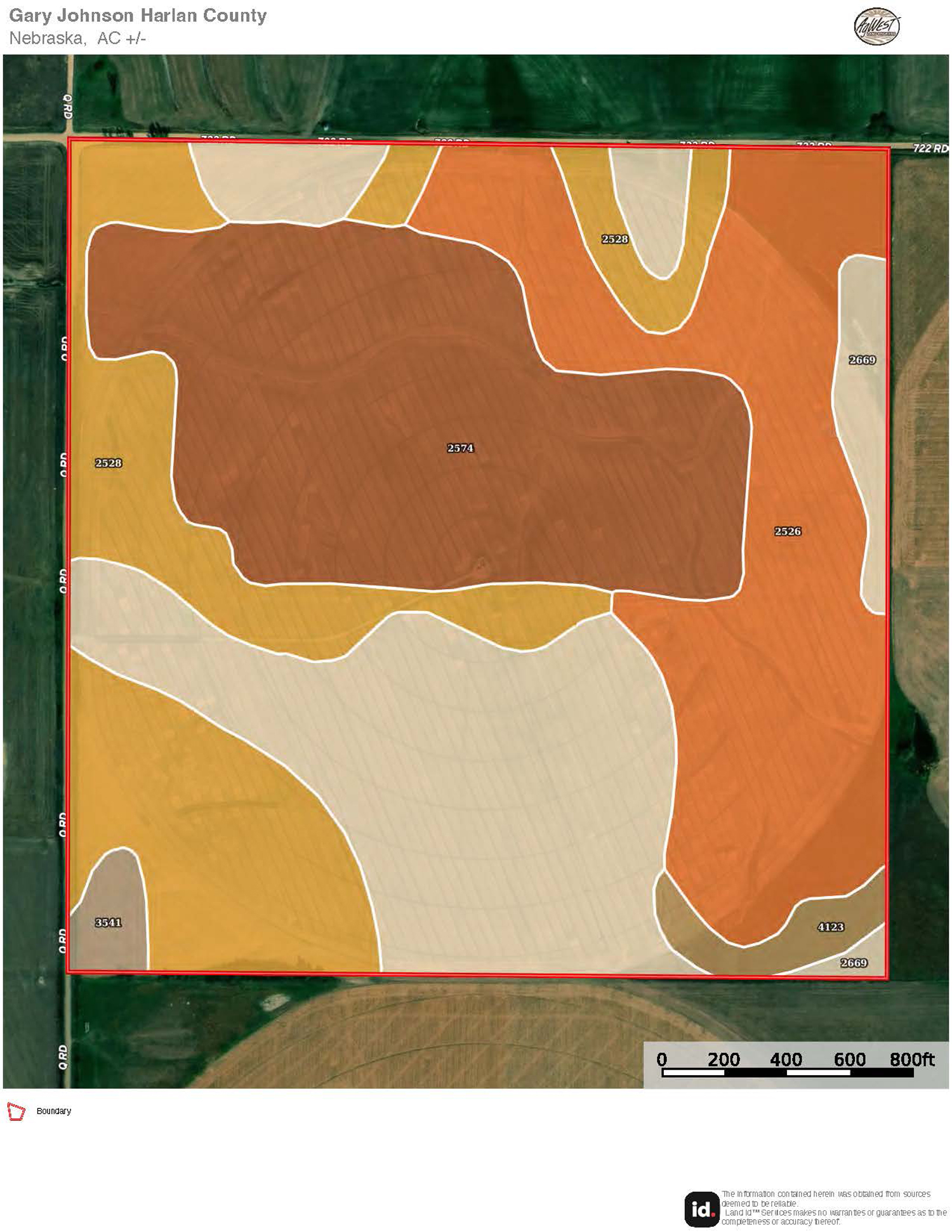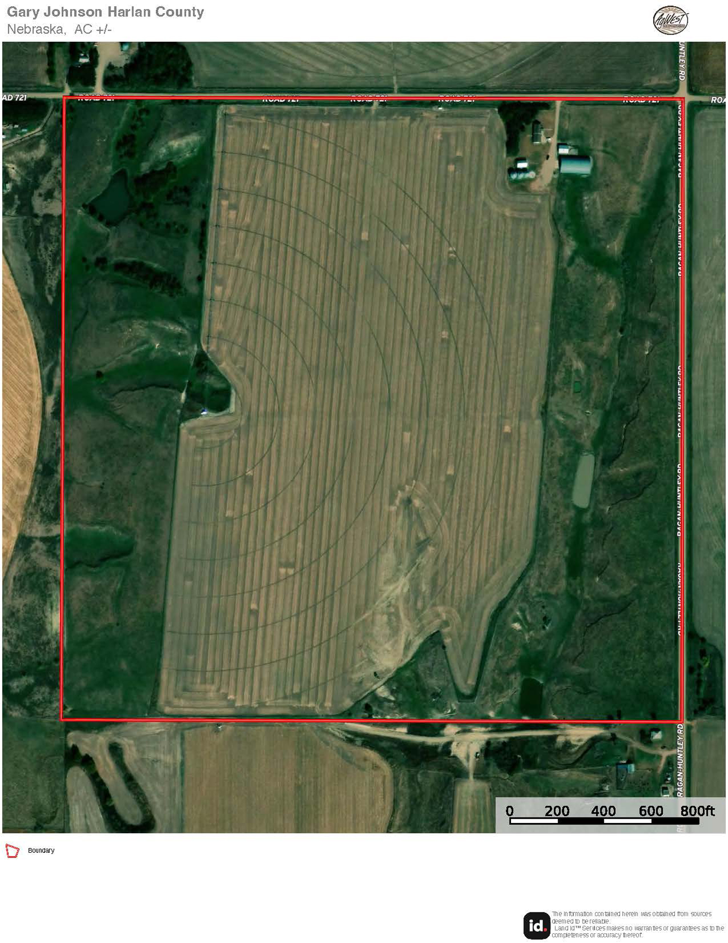 The information contained herein is as obtained by AgWest Land Brokers LLC—Holdrege, NE from the owner and other sources. Even though this information is considered reliable, neither broker nor owner make any guarantee, warranty or representation as to the correctness of any data or descriptions. The accuracy of such statements should be determined through independent investigation made by the prospective purchaser. This offer for sale is subject to prior sale, errors and omissions, change of price, terms or other conditions or withdrawal from sale in whole or in part, by seller without notice and at the sole discretion of seller. Readers are urged to form their own independent conclusions and evaluations in consultation with legal counsel, accountants, and/or investment advisors concerning any and all material contained herein. Maps are for illustrative purposes only and are not intended to represent actual property lines.