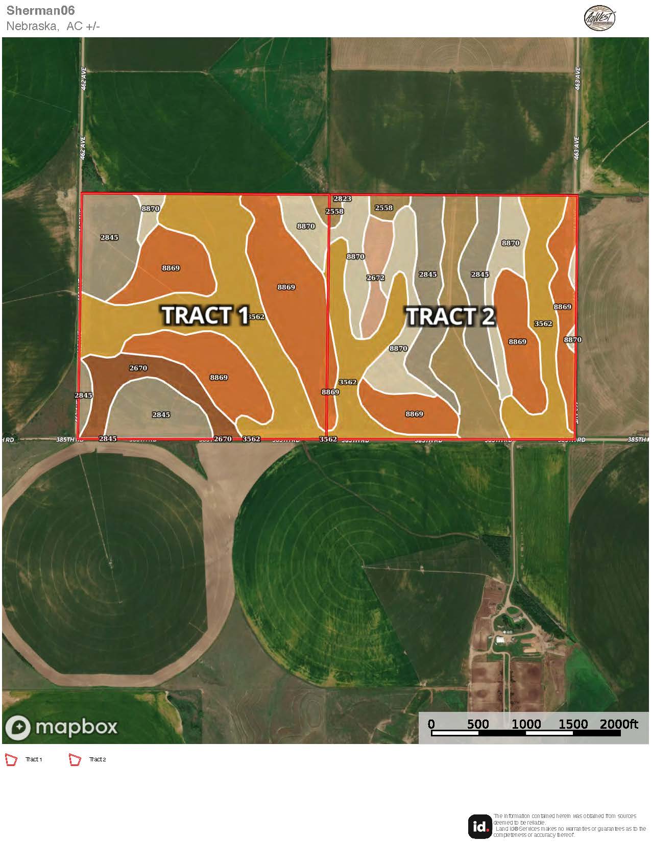 The information contained herein is as obtained by AgWest Land Brokers LLC—Holdrege, NE from the owner and other sources. Even though this information is considered reliable, neither broker nor owner make any guarantee, warranty or representation as to the correctness of any data or descriptions. The accuracy of such statements should be determined through independent investigation made by the prospective purchaser. This offer for sale is subject to prior sale, errors and omissions, change of price, terms or other conditions or withdrawal from sale in whole or in part, by seller without notice and at the sole discretion of seller. Readers are urged to form their own independent conclusions and evaluations in consultation with legal counsel, accountants, and/or investment advisors concerning any and all material contained herein. Maps are for illustrative purposes only and are not intended to represent actual property lines.