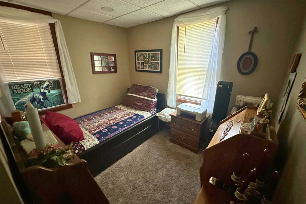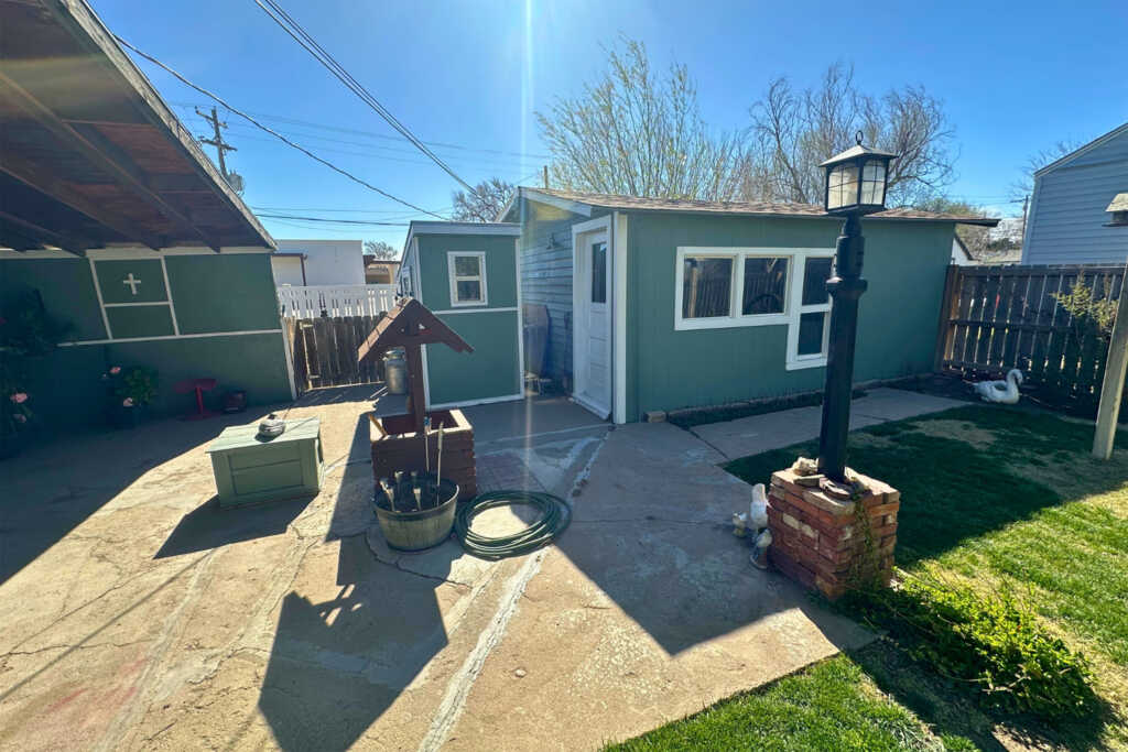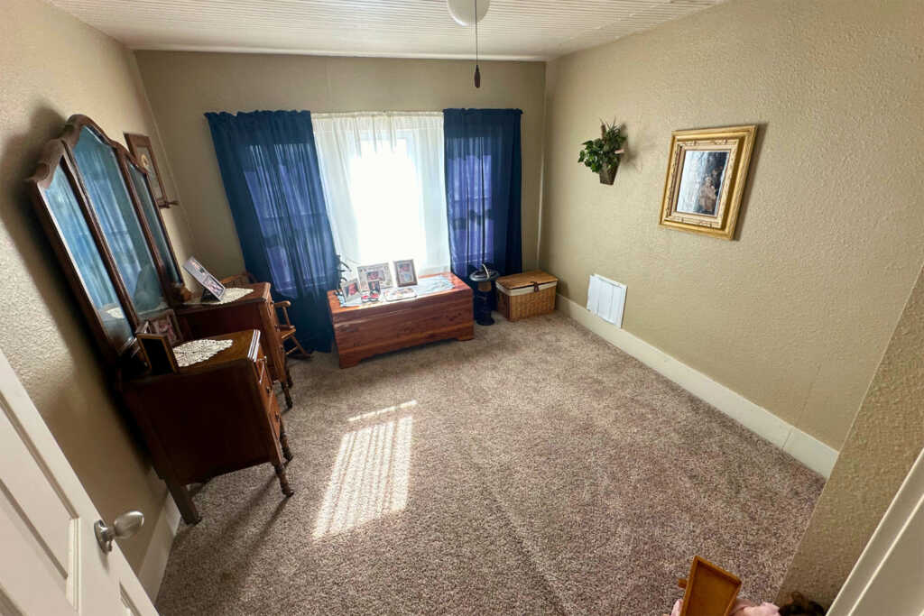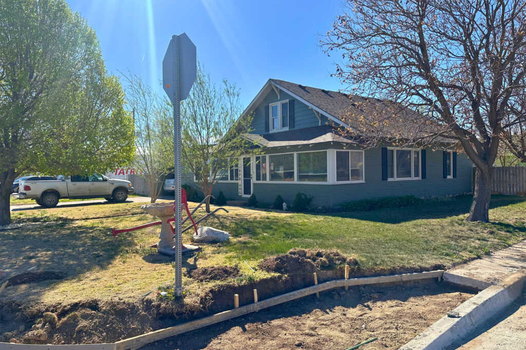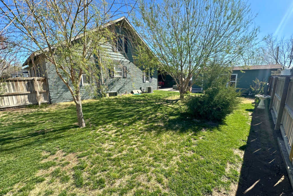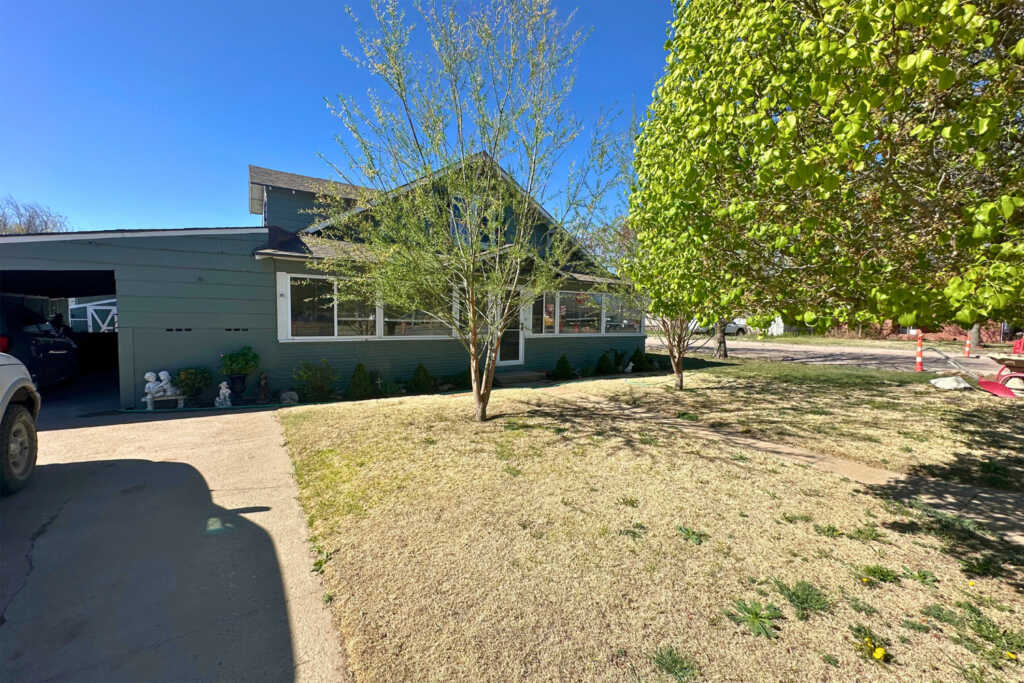 The home is located three blocks west on Broadway from the 4-way stop in Leoti, Kansas. It is situated on the south side of the road, at the intersection of Broadway and 1st Street.