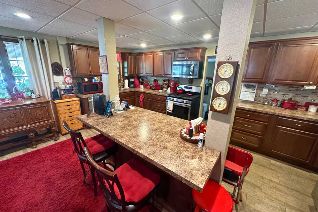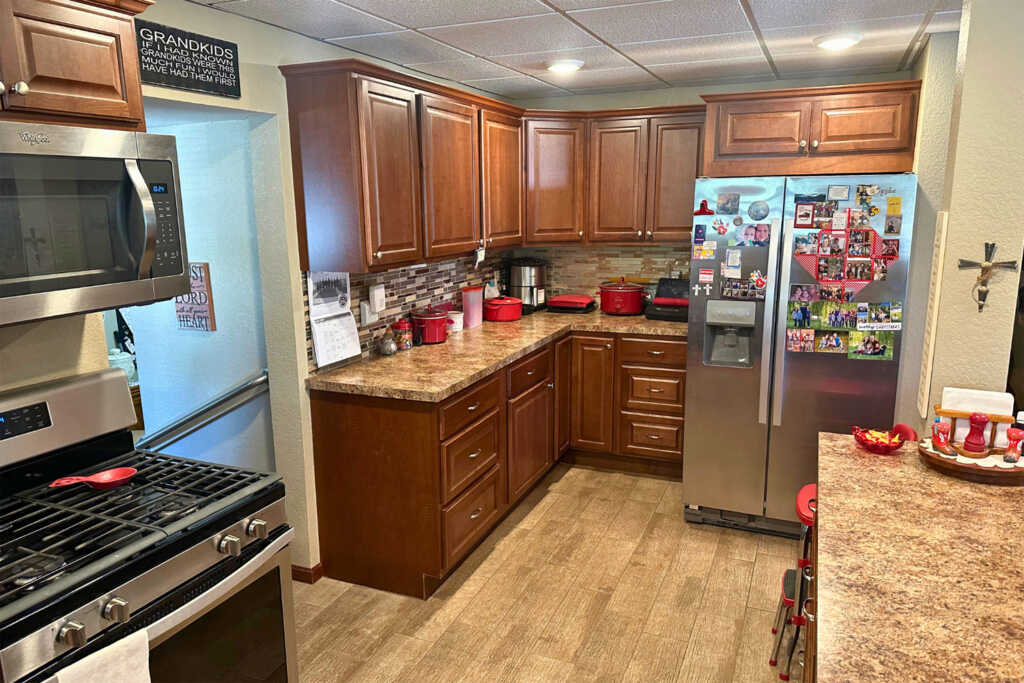 Take a look at this beautiful 5 bedroom 1.5 bathroom home located in Leoti, Kansas. This home has been very well cared for and updated by the current owners. There are two bedrooms and a full bath located on the main floor, along with three bedrooms and a half bath upstairs. The kitchen has nice tile floors and cabinets with updated appliances that stay with the home. The dining and living rooms are spacious and look great. Recent upgrades include a complete overhaul of the electrical system with new wiring and service box, new roof, and new hot water heater. There is an attached covered front porch area along with an attached carport on the side of the house. A fully fenced backyard completes this lovely home!