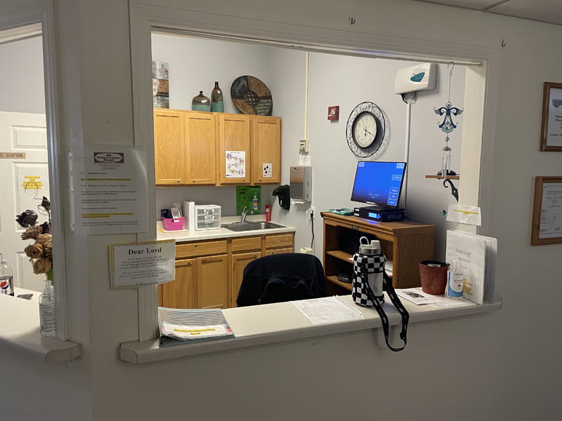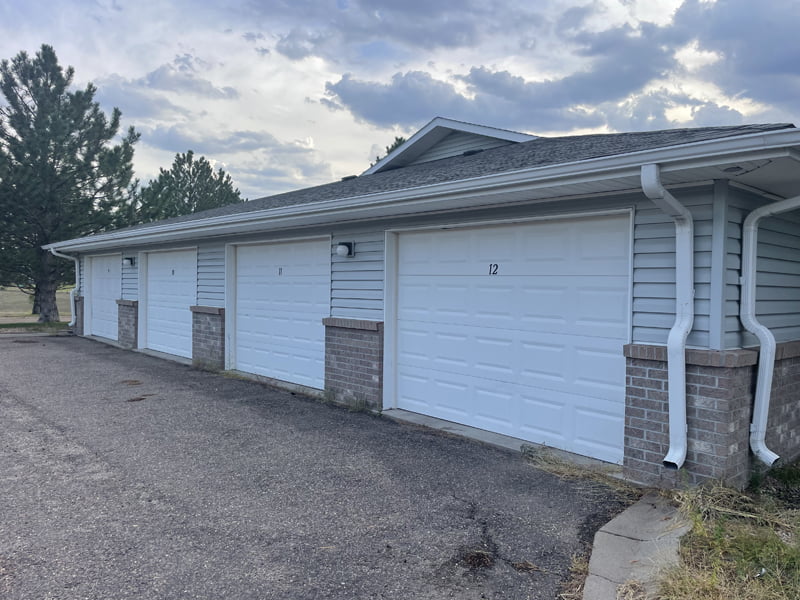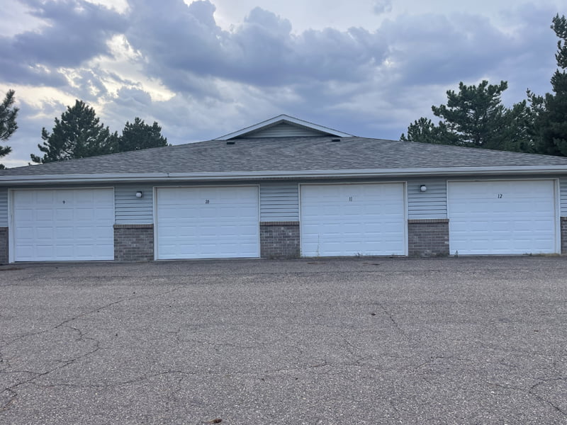 Building is frame construction with vinyl siding, brick veneer, double pane windows, and asphalt roof and gutters in good condition.  12 single-car garages located at the end of each wing allow for easy interior access to your apartment/office space.  The underground sprinkler system waters the surrounding landscape, with mature pine trees offering scenic views and a great sense of privacy around the property.  A high-quality camera surveillance system monitors the exterior and interior of the facility.  Also included are commercial carpet cleaner and water softener, and new pallet truck.