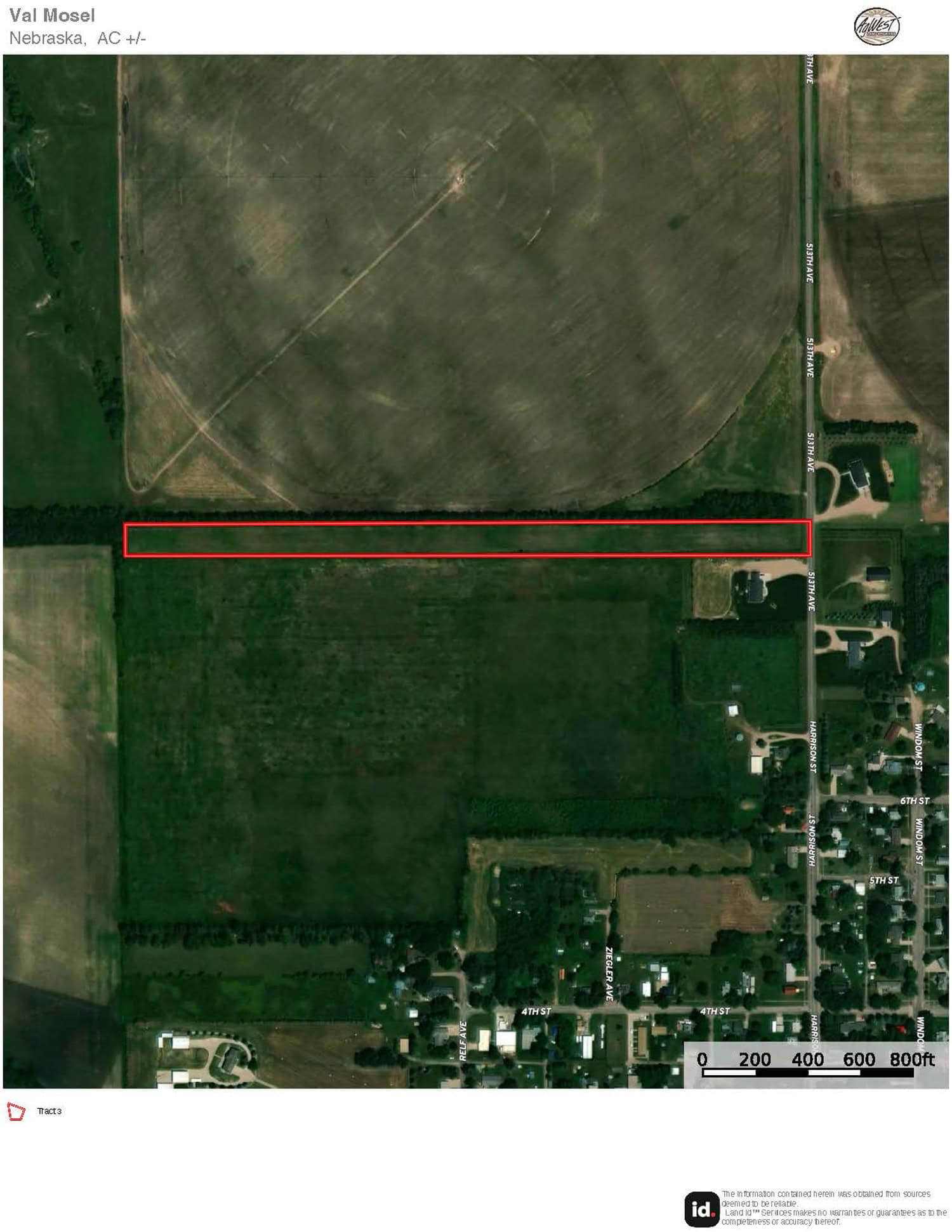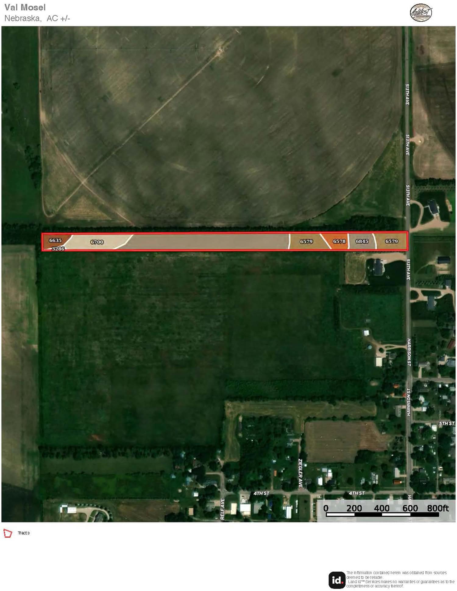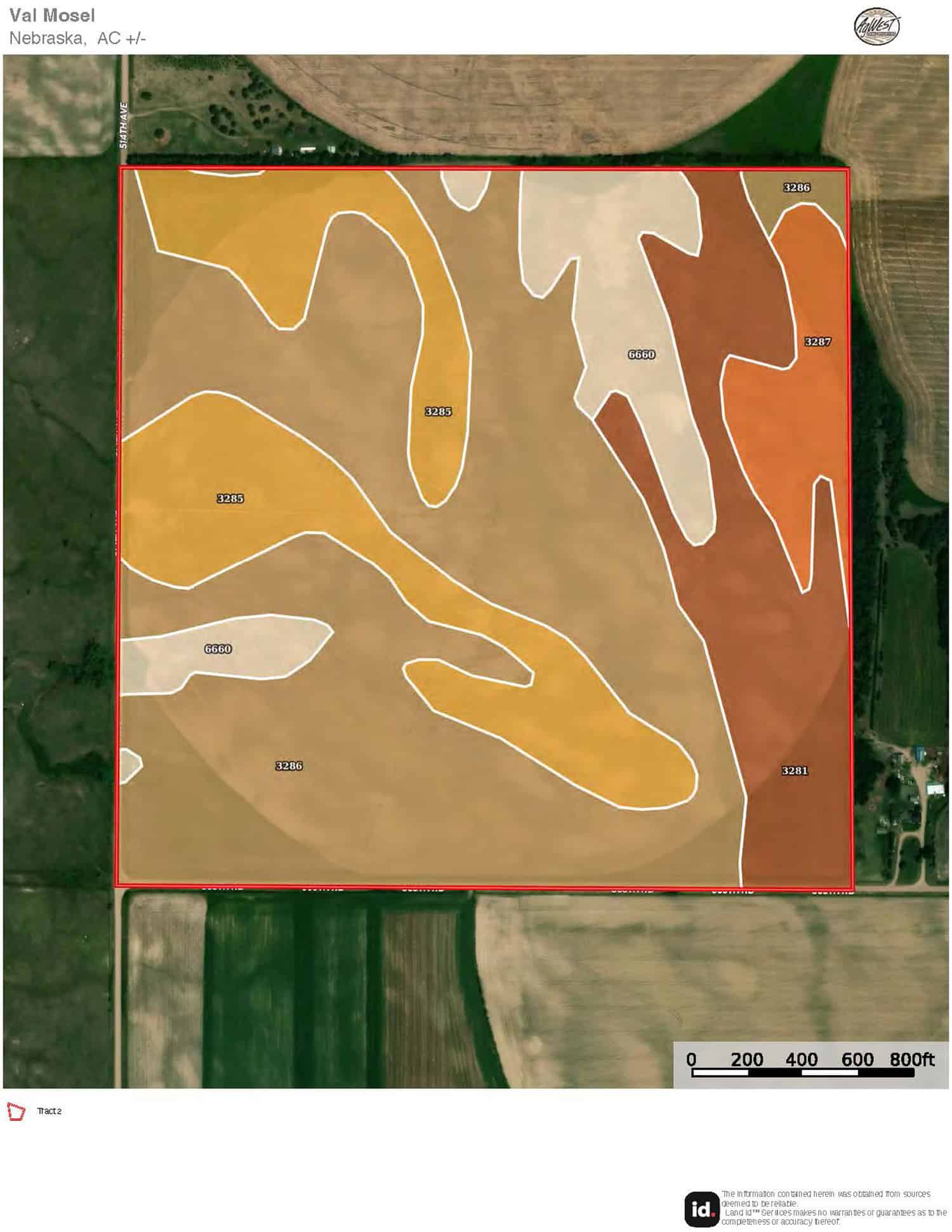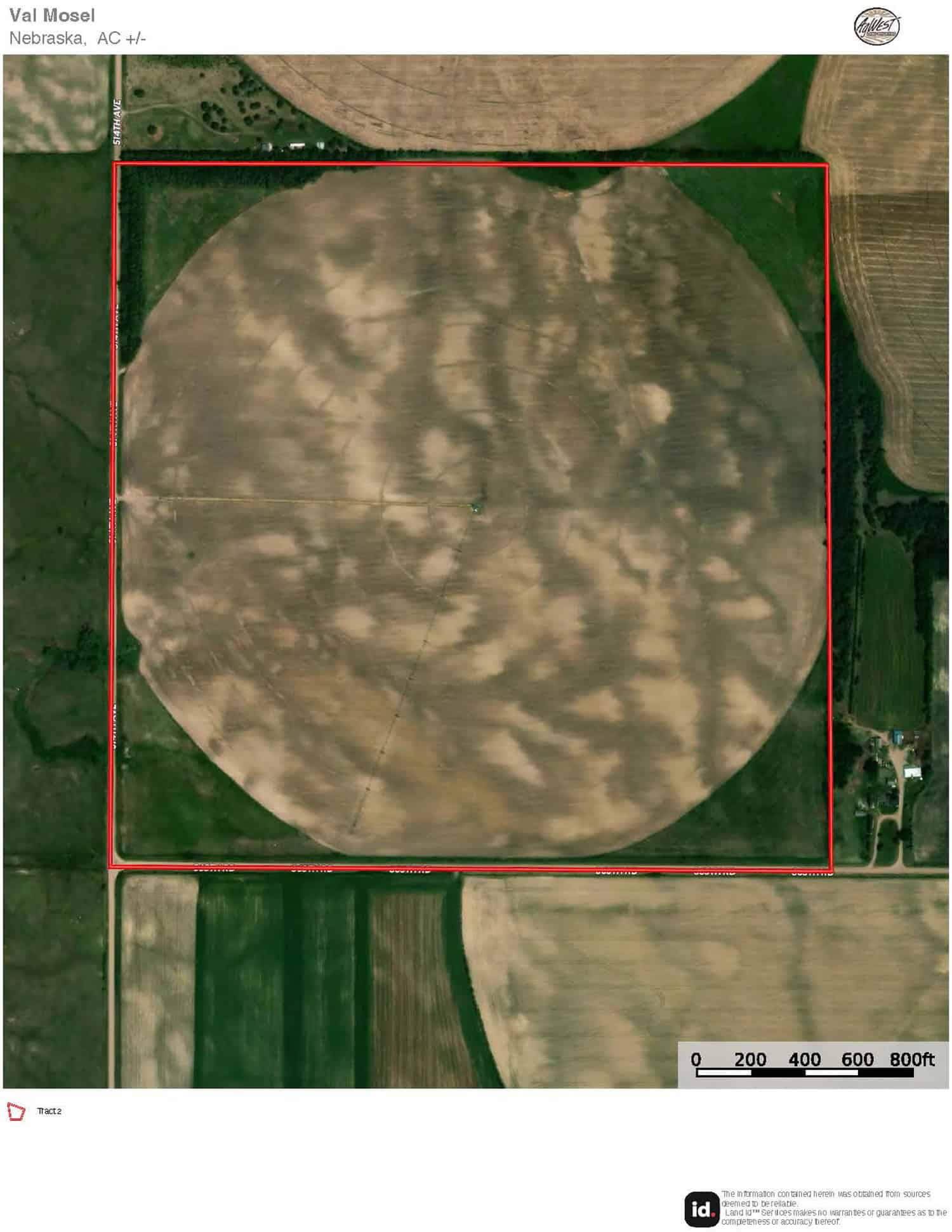 The information contained herein is as obtained by AgWest Land Brokers LLC—Holdrege, NE from the owner and other sources. Even though this information is considered reliable, neither broker nor owner make any guarantee, warranty or representation as to the correctness of any data or descriptions. The accuracy of such statements should be determined through independent investigation made by the prospective purchaser. This offer for sale is subject to prior sale, errors and omissions, change of price, terms or other conditions or withdrawal from sale in whole or in part, by seller without notice and at the sole discretion of seller. Readers are urged to form their own independent conclusions and evaluations in consultation with legal counsel, accountants, and/or investment advisors concerning any and all material contained herein. Maps are for illustrative purposes only and are not intended to represent actual property lines.