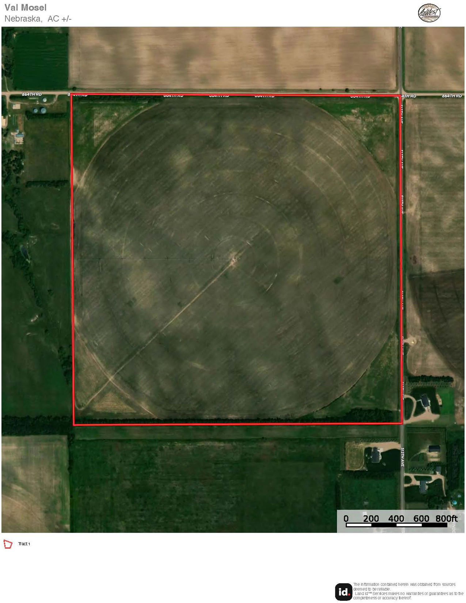 Tract 1: From Orchard, NE travel north on 513th Avenue for ½ mile to 864th Road. The farm will be on the the southwest corner of 513th Avenue and 864th Road.