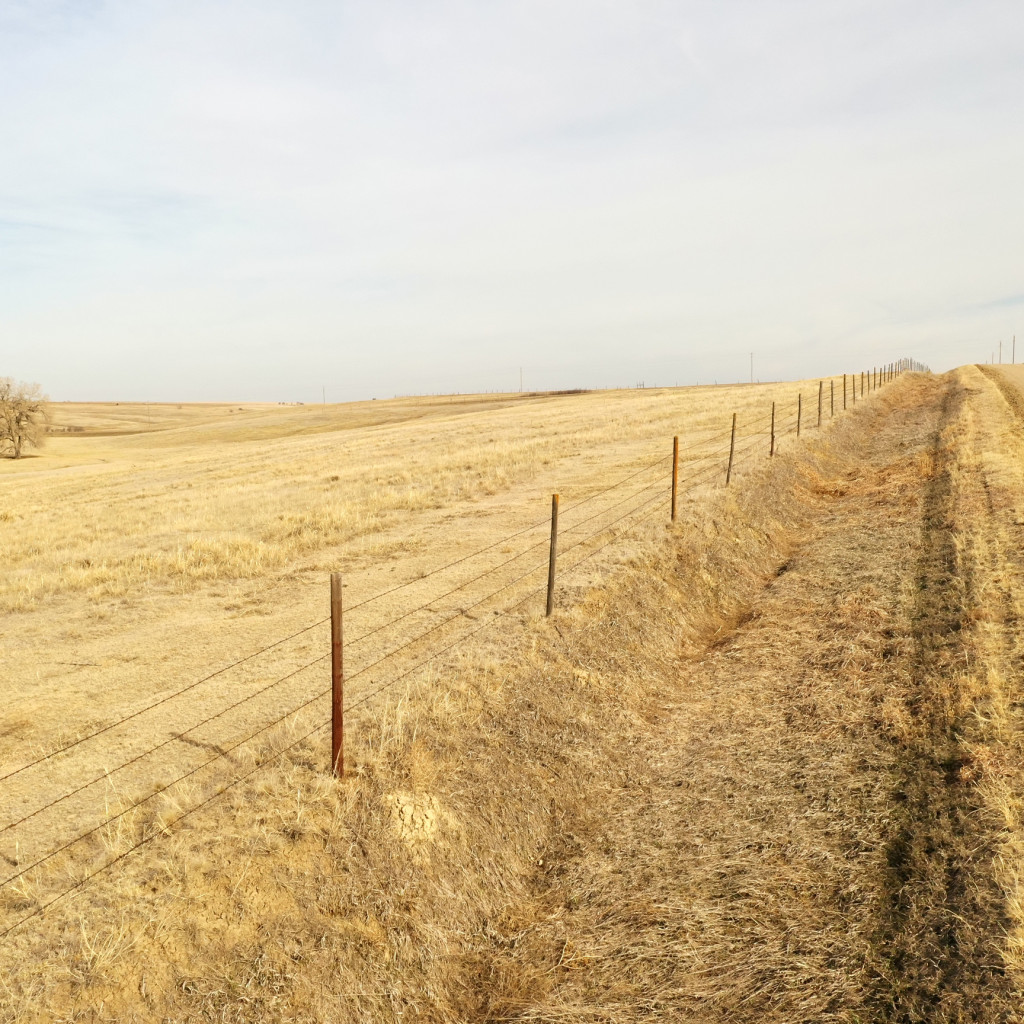 - Four-wire barbed wire fence surrounds the pasture.