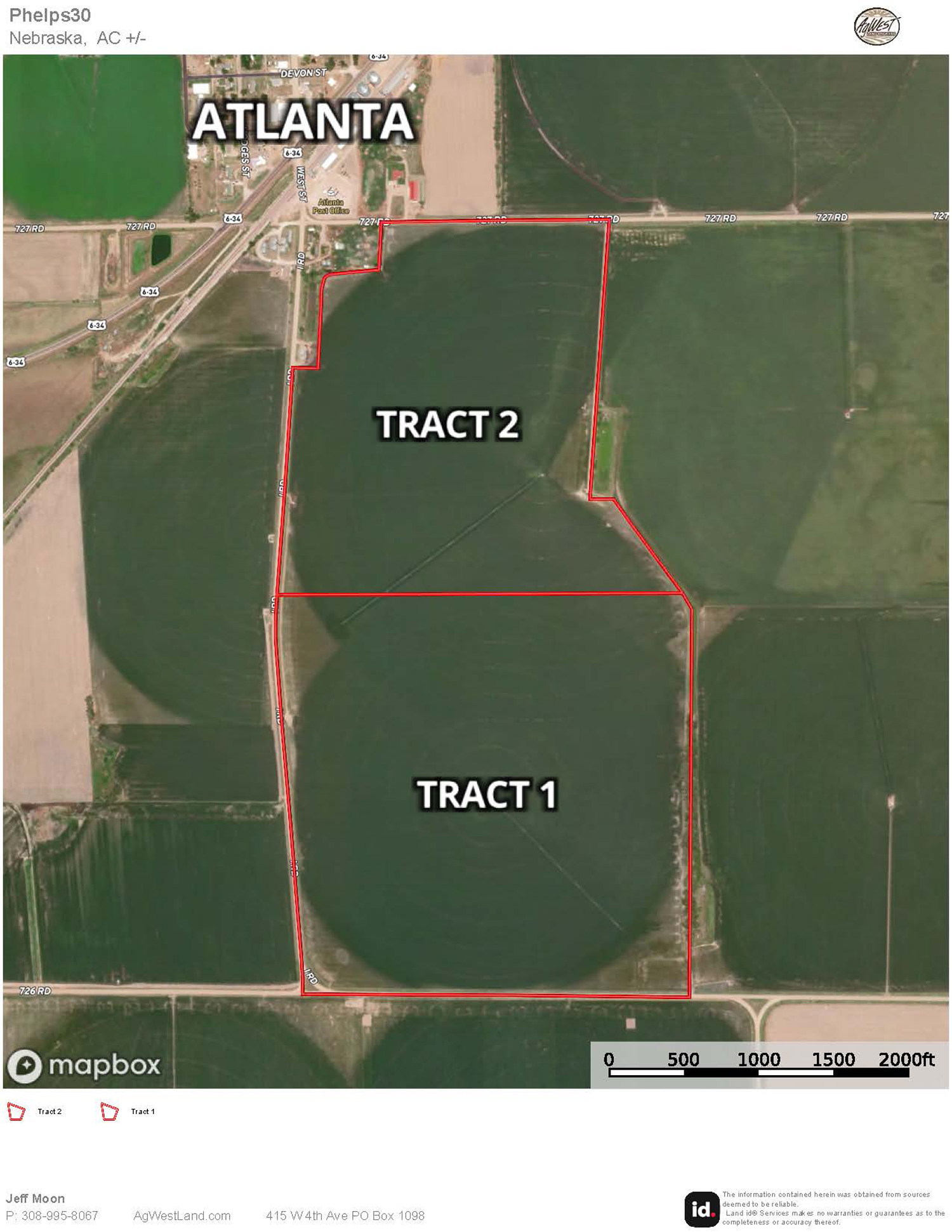 Located just south of Atlanta, Nebraska, these highly productive tracts offer 286± acres in one of the most competitive and sought-after agricultural regions in the area. The farms are nearly fully irrigated, each supported by an irrigation well and a center-pivot system, providing consistent water delivery and strong yield potential across most of the property. Positioned with excellent access and proximity to several grain markets in the area, these farms benefit from reduced transportation costs and convenient year-round marketing opportunities. The combination of reliable water, quality soils, and strong local demand make these exceptional opportunities for row-crop producers, investors, or operators looking to expand in a proven area.