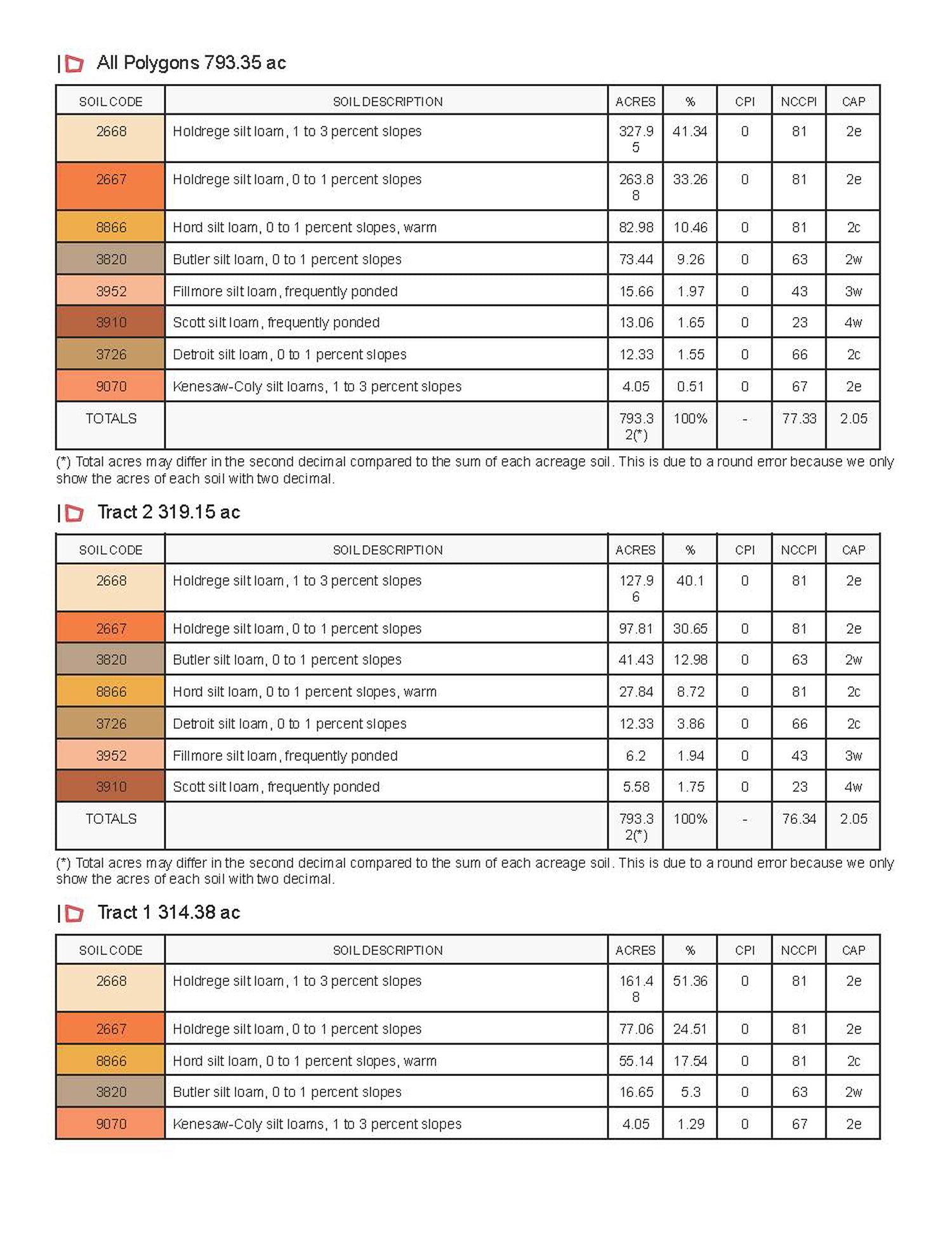 Total Property Taxes For All 3 Tracts is estimated to be $32,872.10 or $41.25/acre.