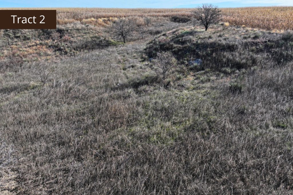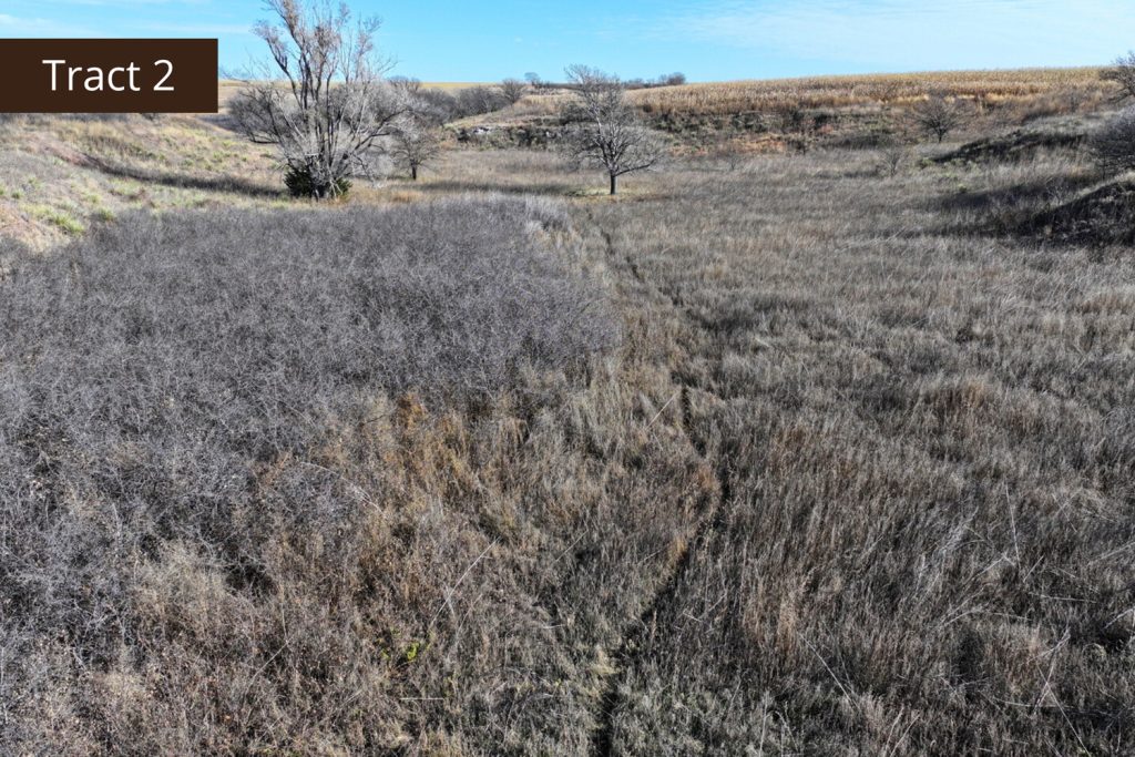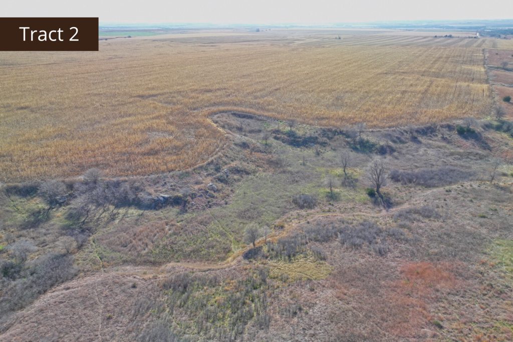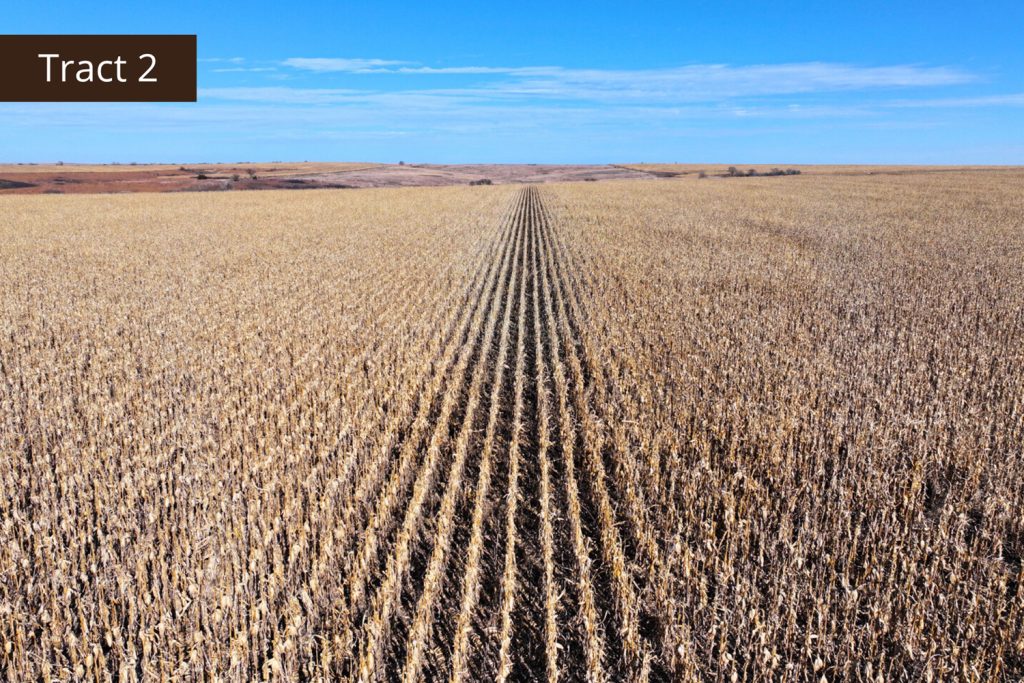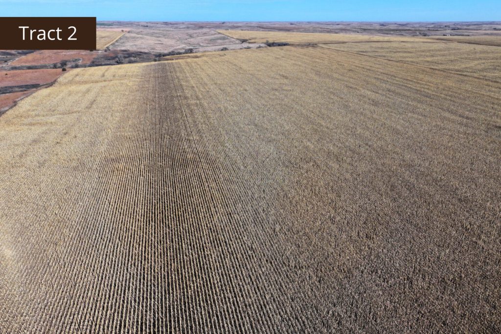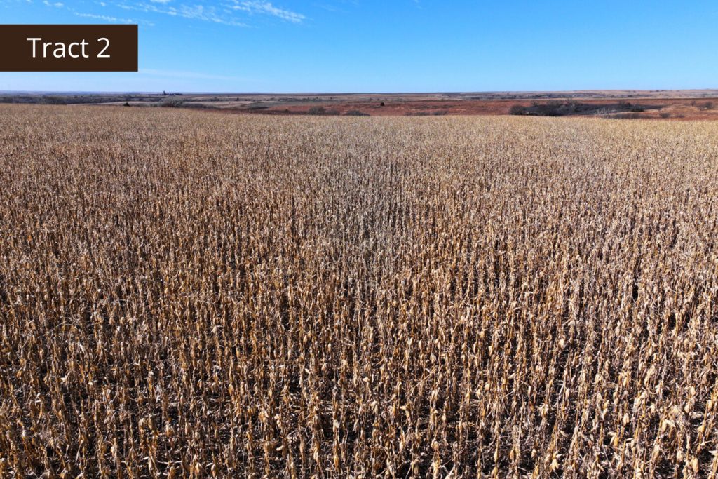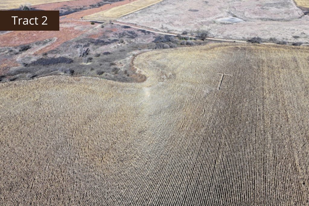 Description: Located 2 miles north of Edmond, Kansas along County Road X, Tract 2 offers great tillable acres along with a small draw teaming with wildlife. This farm has 72.03+/- tillable acres (see FSA data) consisting primarily of Holdrege silt loam soil with a very easy slope of 1-3 percent across the field. Running through the northwest corner of the property is a small pocket of lush native grasses, thickets, and trees, giving you a great opportunity to hunt pheasant, quail, and whitetail deer that often travel off the creek throughout the hunting season. There are 65.81+/- corn and wheat base acres on this farm and it is currently planted to corn. Buyer will have immediate possession upon the successful closing of the property. Signs will be posted.