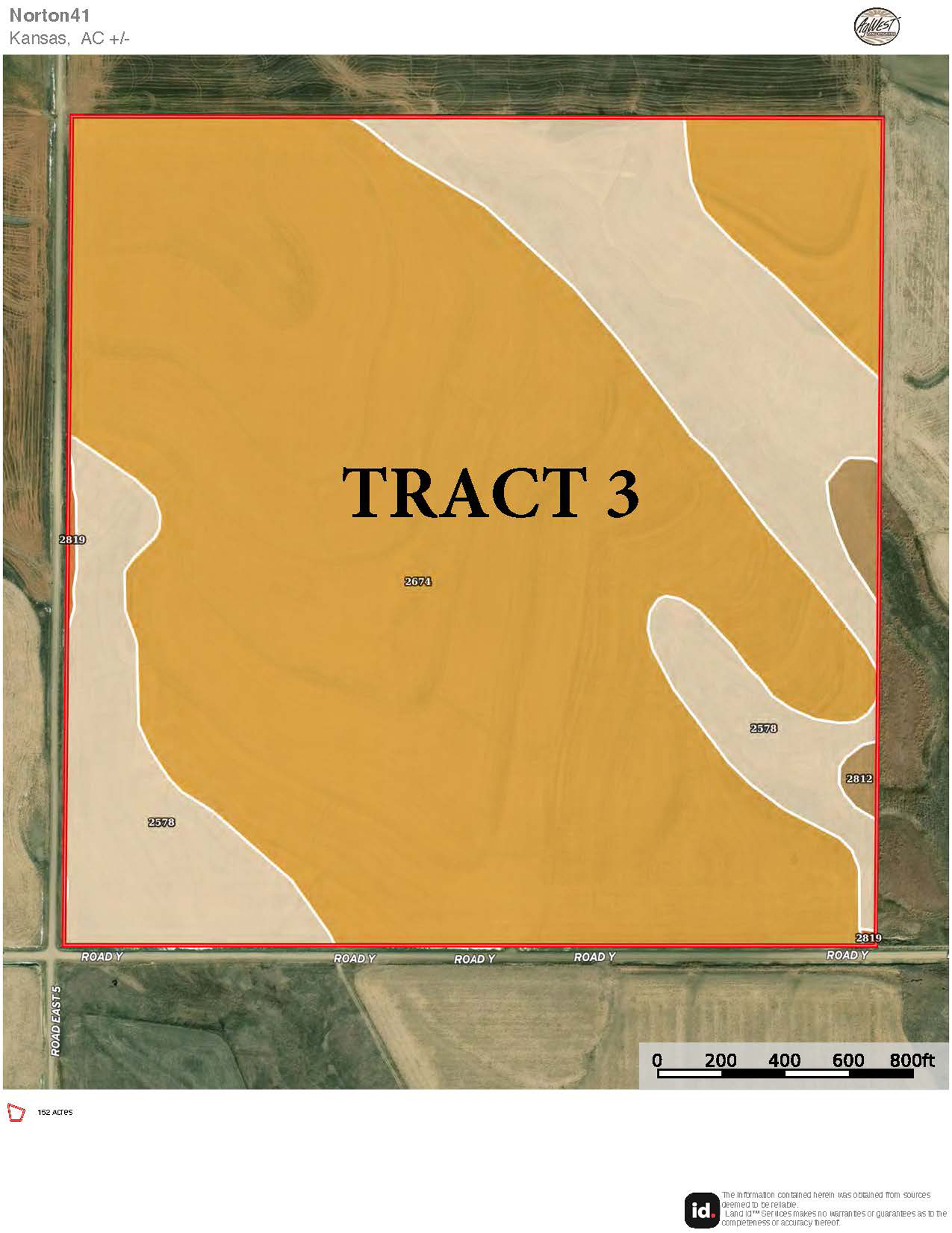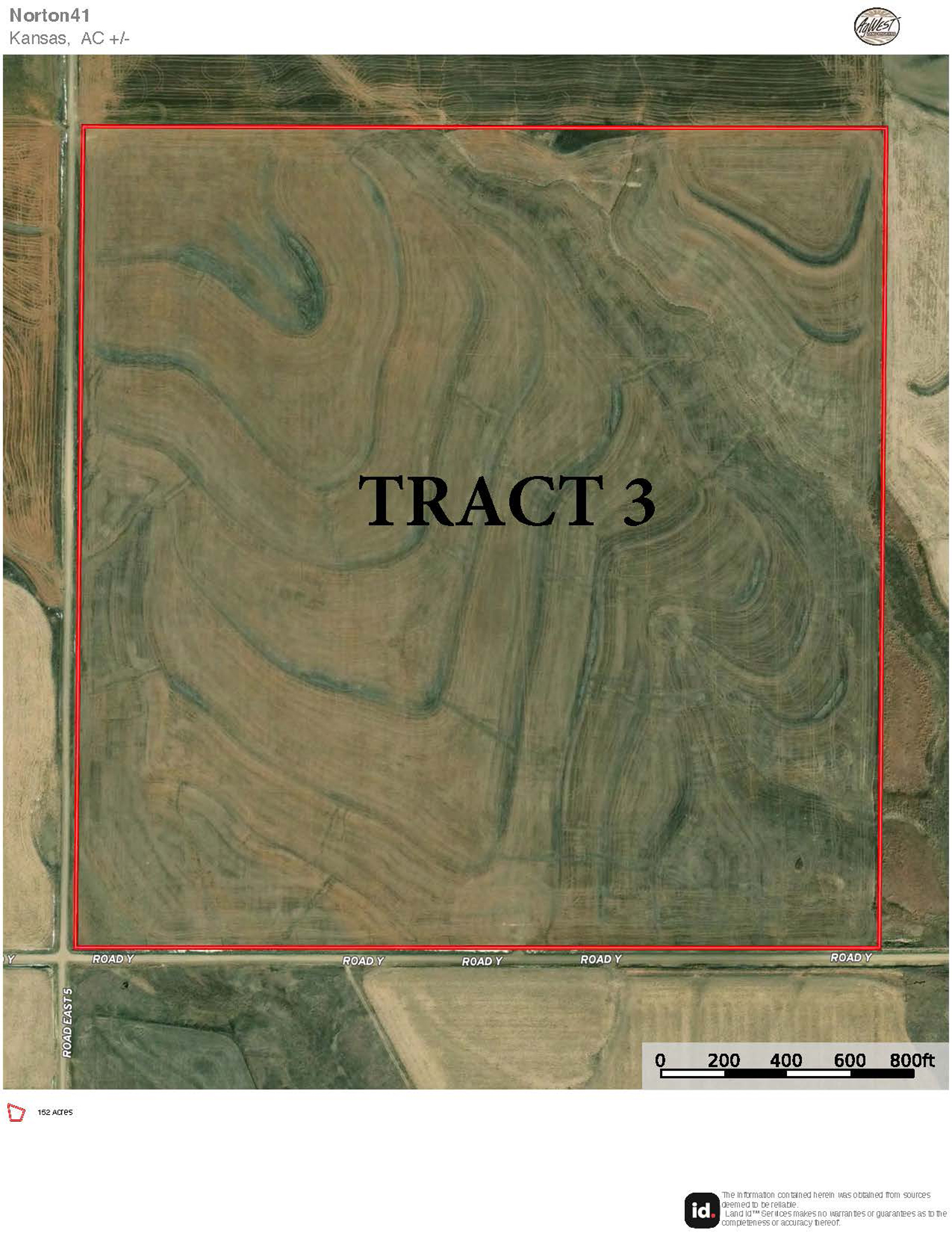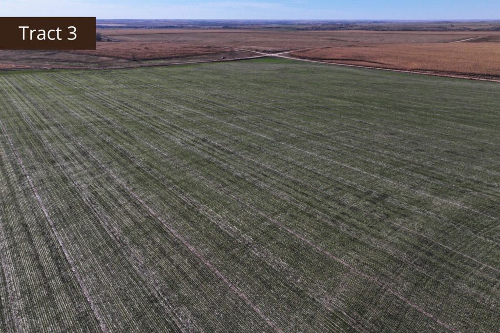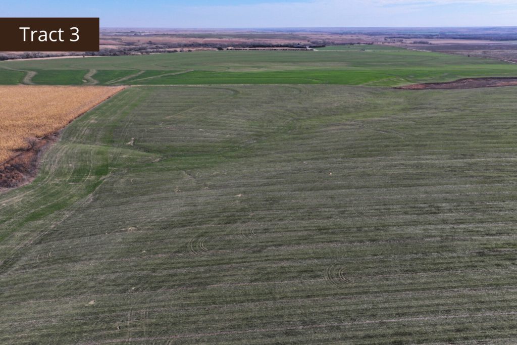 Description: Located approximately 2 miles northeast of Edmond, Kansas along County Road Y, Tract 3 offers 152.90+/- acres (see FSA data) of prime Norton County farmland. Only 1.5 miles off pavement, this tract has great access to Highway 9 from County Road E5. The farm has an easy layout of terraces across the tract that have been well maintained by the tenant. Consisting of primarily Holdrege silt loam soil, with a gently rolling landscape, this upland farm would be great for the farmer or investor. Tract 3 has 139.69 total base acres of corn and wheat and is currently drilled to wheat. Possession will be upon harvest of the 2026 wheat crop. Signs will be posted.