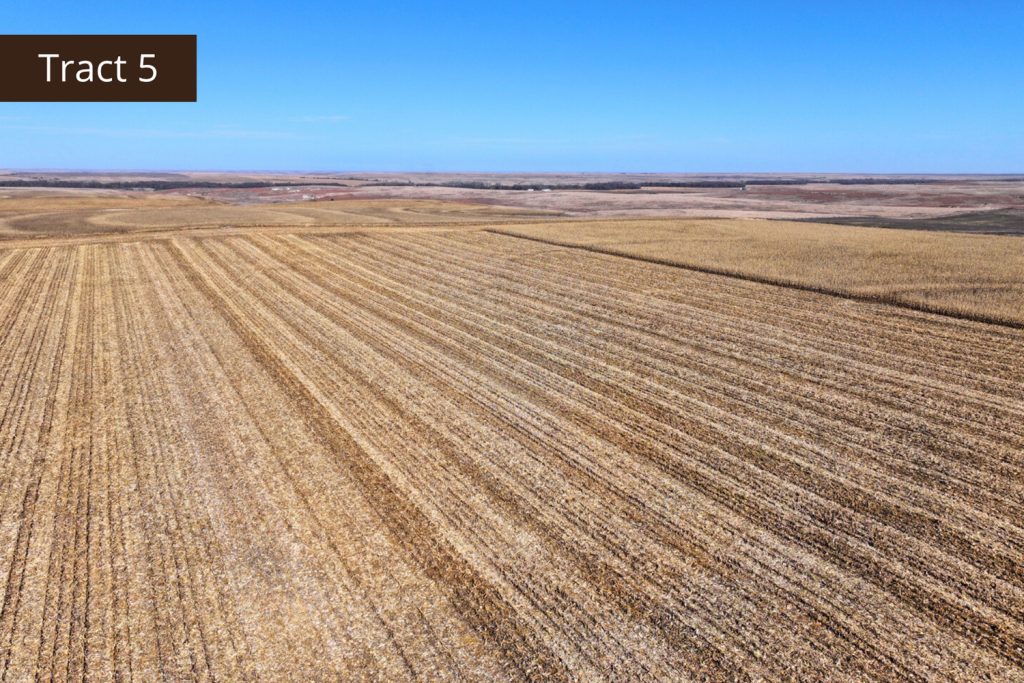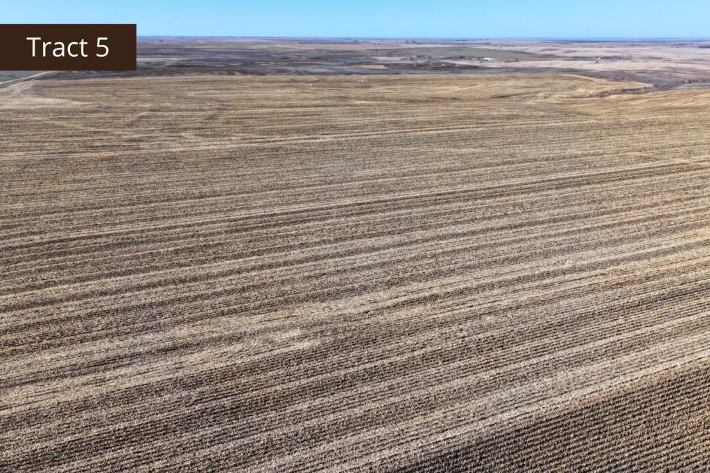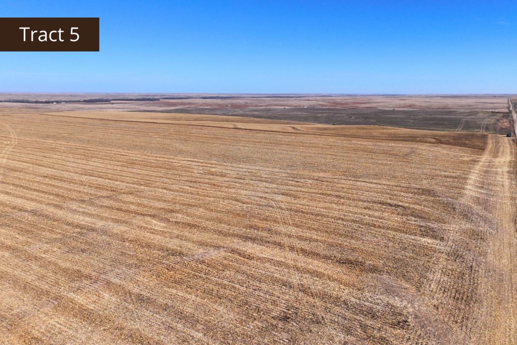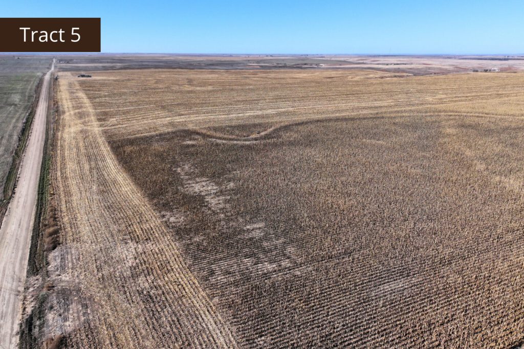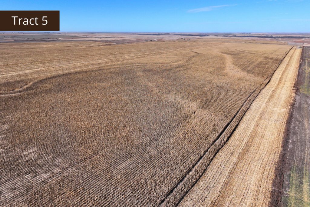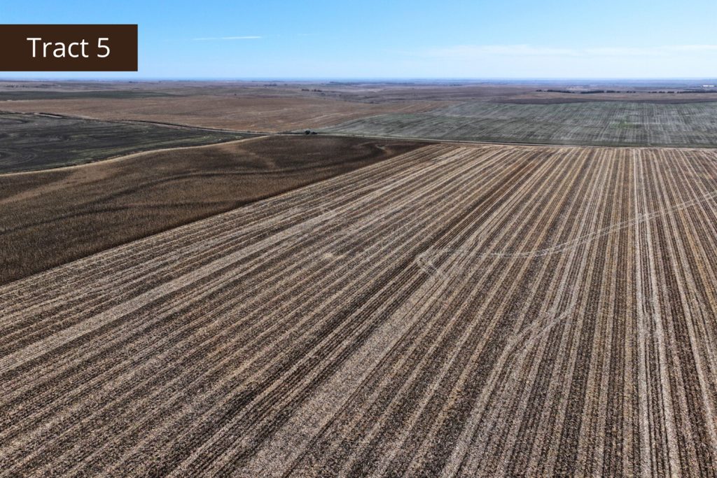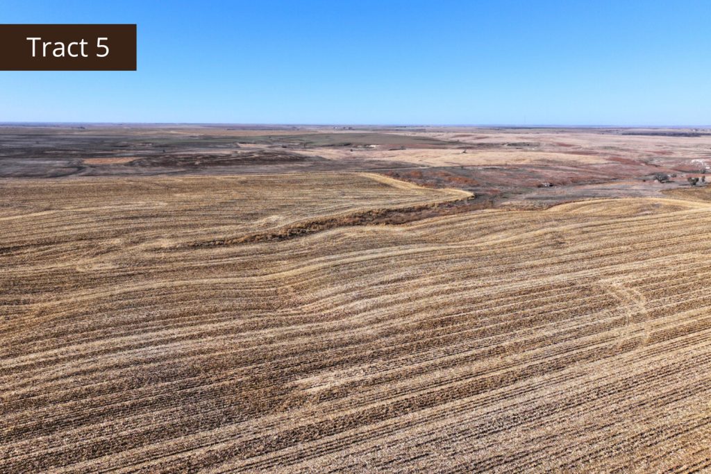 Description: Tract 5 is located along County Road BB, in Graham County, Kansas. This farm is almost fully tillable, with 150.91+/- acres of farmland and the remaining 7.62+/- acres consisting of a long draw stretching south into the property. Filled with fireweeds, thickets, and native grasses, this draw provides great wildlife habitat for upland game birds, whitetail deer, and mule deer, giving you an added hunting potential for the property. Most of the tillable acres are fertile Holdrege silt loam soil, with minimal slope covering much of the upland farm with the exception of a few pockets being slight to moderate slope. There are 137.87 established base acres for wheat and corn and it is currently corn stalks. Buyer will have immediate possession upon successful closing of the property. Signs will be posted.