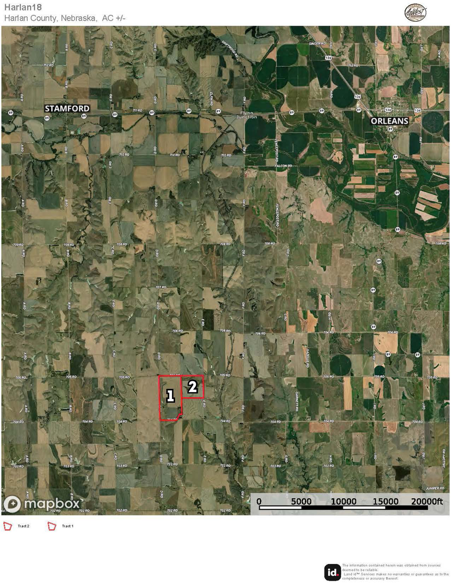 AgWest Land Brokers is proud to present to auction 468 +/- acres of dryland farm ground and pasture in Harlan County, Nebraska. Both tracts of cropland consist primarily of productive, well-laying, Holdrege Silt Loam Soils at a 1-3% slope. The lush grassland provides excellent grazing opportunities. Tract 1 includes a submersible stock well and a pond for a water source. Tract 2 is equipped with a solar well. This farm is open for the 2025 growing and grazing season. All acres are estimates provided by the assessors.