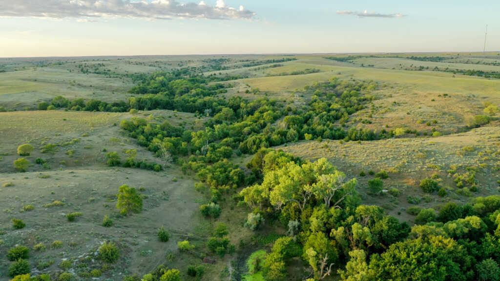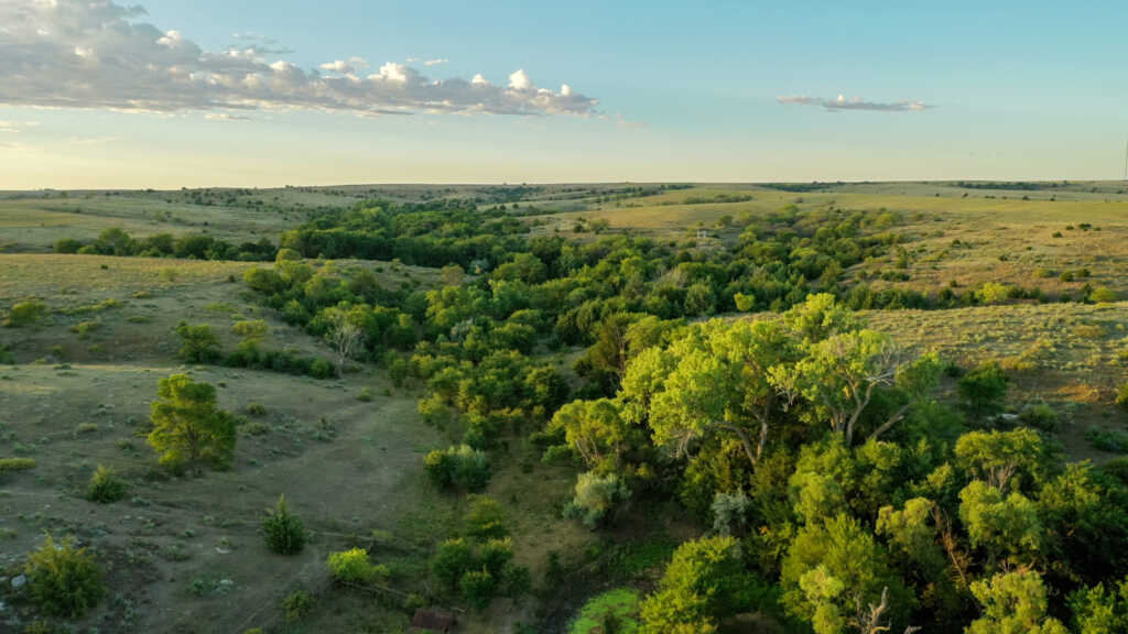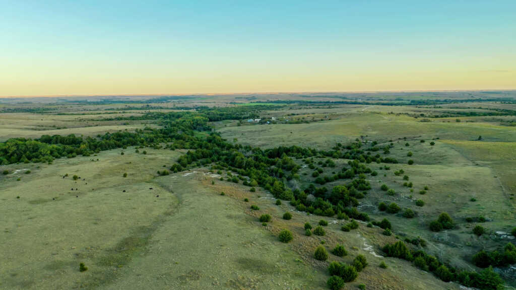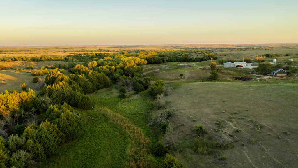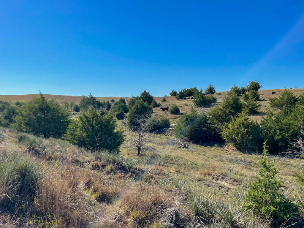 Tucked away in the rolling grass hills of Norton County, KS, the R.D. Swede Ranch showcases some of the most beautiful scenery Northwest Kansas has to offer. With nearly 700 acres spread across this large rolling landscape, giant cottonwoods, cedar trees, and thickets fill in the deep canyon draws that carve through the ranch. As you drive through the property you will notice the ranch offers an even mixture of cool and warm season grasses and a thin line of brush hugging the tree lines. The abundance of natural springs seeping from the hillsides creates a vibrant green landscape at the bottom of the draws as the stream makes its way to the Solomon River. These springs provide a strong year-round water source for the cattle and wildlife on this property. With nearly 2 miles of thick tree cover surrounded by brush and CRP grasses, this ranch offers world-class hunting for whitetail, mule deer, turkey, and upland game. As you turn off Highway 283, the private rocked drive will bring you to the main house at the north end of the ranch. The comfortable cinder block house comes with a large 60’x40′ shop and the original milk barn that has withstood time. The R.D. Swede Ranch offers beautiful scenery, world-class hunting, and sits in a great location for anyone looking to add acres to their ranch or land portfolio. Don’t miss out on this once-in-a-lifetime opportunity!